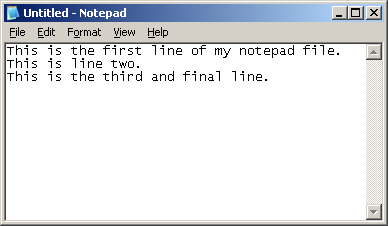 Hopefully you ended up with a new Notepad window appearing on your desktop looking like this: