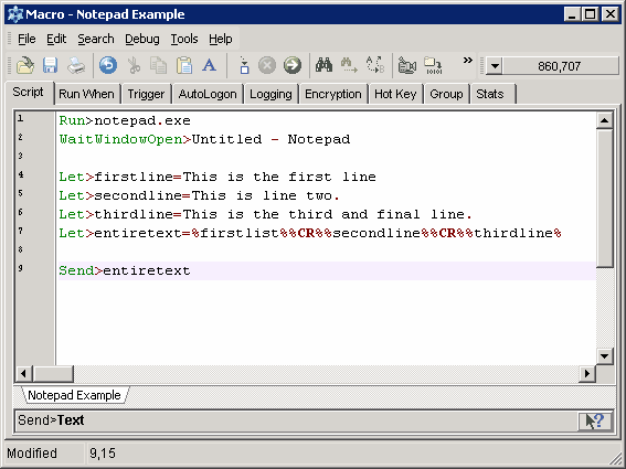 For this we use the SendText command, commonly abbreviated to just Send: