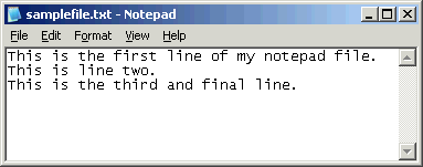 Note the new window title ? "samplefile.txt ? Notepad" ? proof that the file has been saved.
